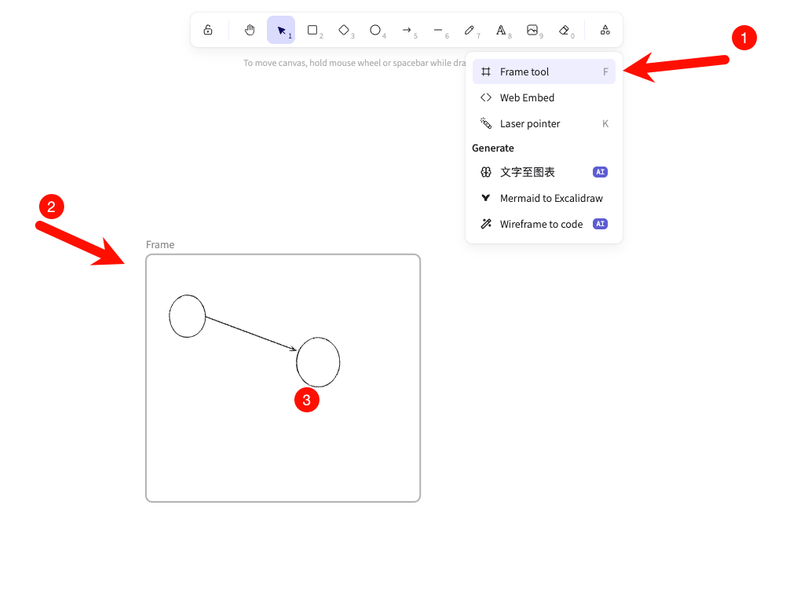 First, open Excalidraw Smart Presentation, then press the [F] key to create a new frame. You can think of each frame as a page in a PowerPoint presentation, or each frame in an animation. After creating a new frame, draw some flowcharts you want to present, like this: