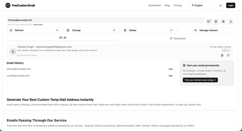 FreeCustom.Email is a privacy-focused temporary email service that allows users to generate disposable email addresses instantly. Key features include: