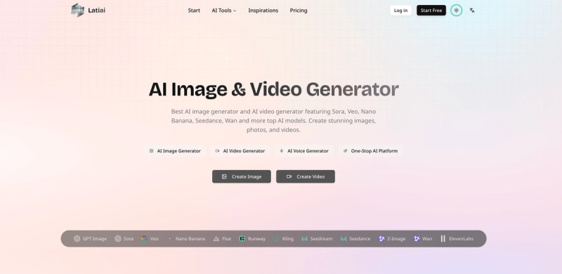 Latiai is a comprehensive AI-powered platform for generating high-quality images and videos. It combines multiple state-of-the-art AI models including OpenAI's Sora for video generation, Google's Veo, and Nano Banana for image creation. The platform offers: