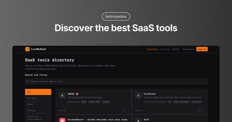 ListMySaaS is a curated directory of SaaS tools designed specifically for founders and makers. Key features include:
