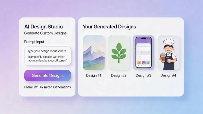 - AI Logo Generator: Creates vector-compatible logos with brand consistency