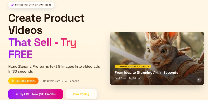 Cinematic Quality: Generate stunning 4K videos with full commercial licensing. Instant Production: Turn ideas into high-converting video ads in under 30 seconds. Multi-Model Power: Access top-tier AI capabilities without managing multiple subscriptions. E-Commerce Focused: Specialized focused on product showcasing and marketing narratives. Elevate your brand's visual storytelling with NanoBananaPro