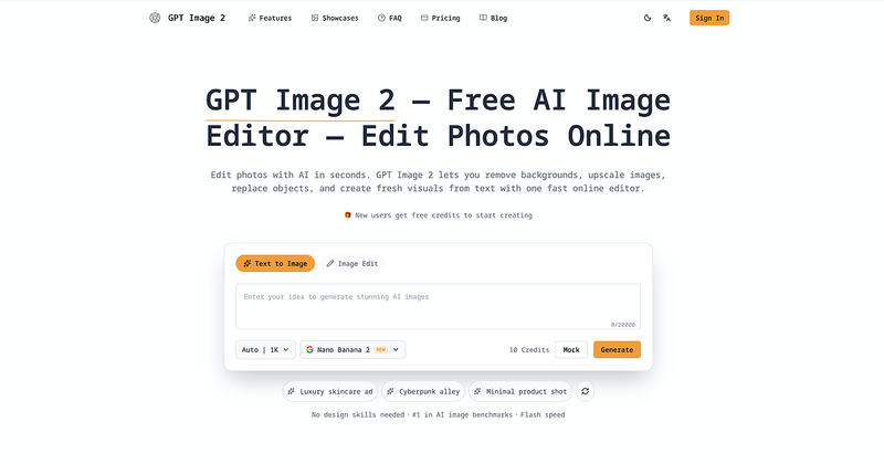 GPT Image 2 is an advanced AI-powered image generation and editing platform that allows users to create stunning visuals from text prompts or enhance existing images. Key features include: