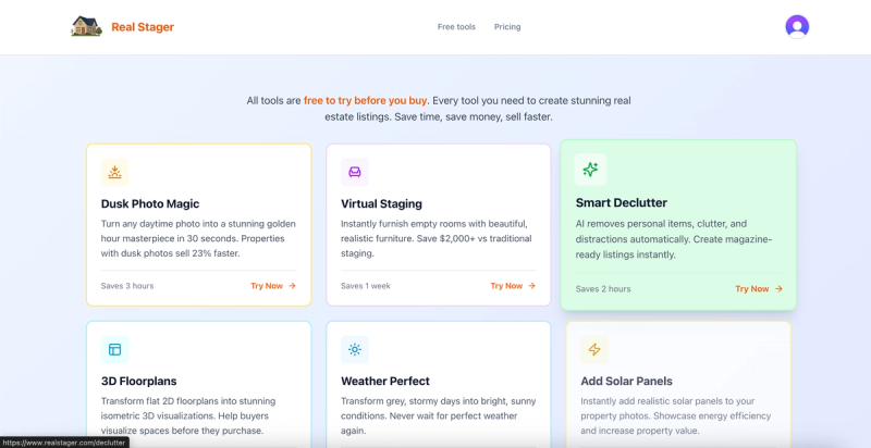 Real Stager is the fastest, most affordable way to create magazine-worthy real estate photos. Instead of waiting days for traditional staging or paying thousands for furniture hire, agents can upload any property photo and get professionally enhanced results in under 30 seconds. From virtual staging to decluttering, dusk photos, weather fixes, and 3D floorplans, Real Stager gives you every tool you need to make listings stand out and sell faster. Perfect for real estate professionals who want premium results without the premium price.