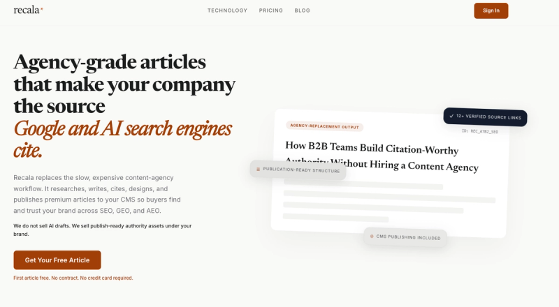 Available as a freemium service, Recala is ideal for marketers, startups, and small businesses needing to scale professional, authoritative content without the massive agency overhead. Stop adding to the noise. Build something meaningful.