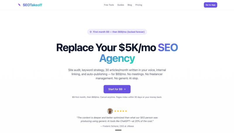 SEOTakeoff runs your entire SEO content pipeline on autopilot.