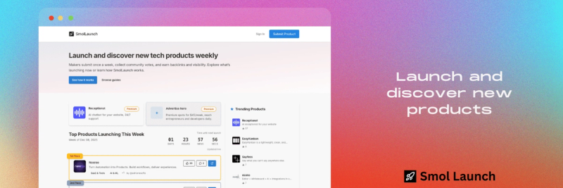 Smol Launch is a simple, indie-first launchpad built for founders who are actually shipping products and improving them week by week. It exists as an alternative to hype-driven launch platforms where success is often determined by timing, existing audiences, or one-day spikes rather than real product quality or learning.