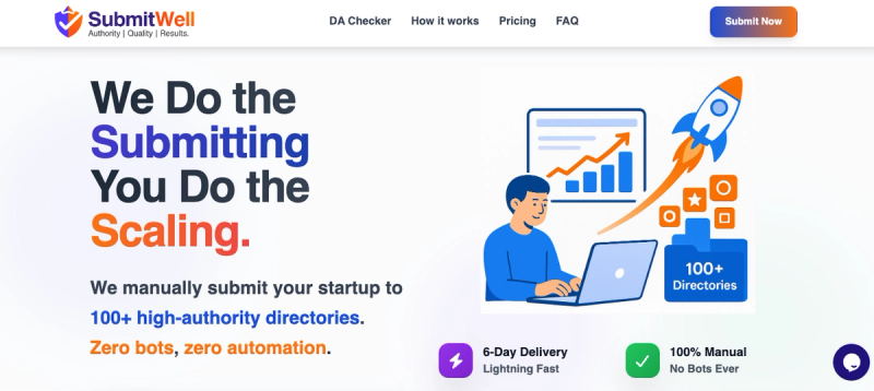 SubmitWell is a professional directory submission service designed to help startups and businesses increase their online visibility and improve their domain rating (DR) score. The service manually submits your startup to 500+ high-quality directories, ensuring genuine backlinks that boost SEO rankings.