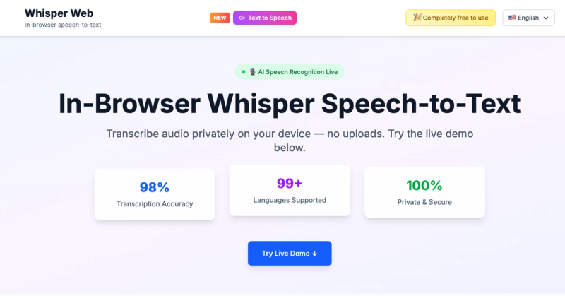 Whisper Web is a cutting-edge in-browser speech-to-text tool that leverages AI technology to provide accurate transcriptions directly in your web browser. Key features include: