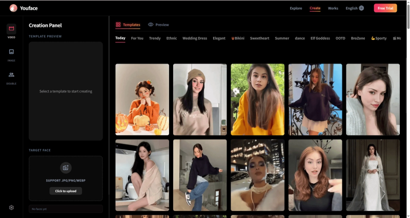 Youface is an AI face swap platform built for creators. It supports video face swap, photo face swap, and multi-person face swap, with template-based workflows for fast content production. Users can upload portraits in the browser and generate results online with strong visual consistency in quality, lighting, and motion. It is suitable for social media content, creative campaigns, and personal projects. Youface offers both pay-as-you-go credit packs and monthly subscriptions to fit different usage levels.